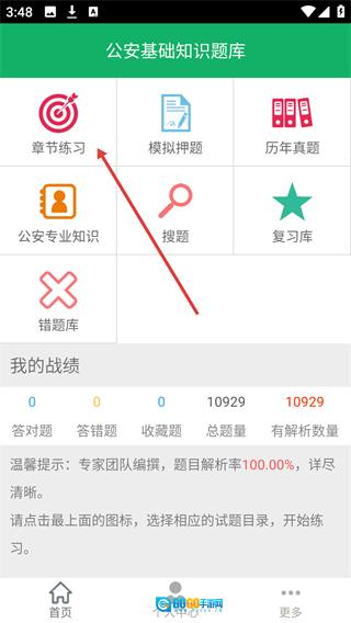 1、进入【公安基础知识题库】页面后,找到【章节练习】按钮并点击。