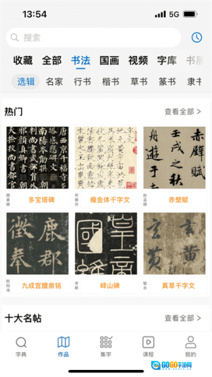 2、高清字帖与拓本:提供大量高清字帖,用户可以随时和查看,支持多种书法家的字帖,方便进行临摹和学习。