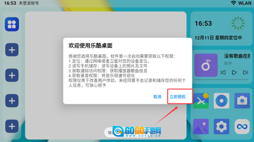 1、点击立即授权,接受首次启动的权限。