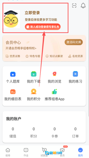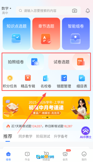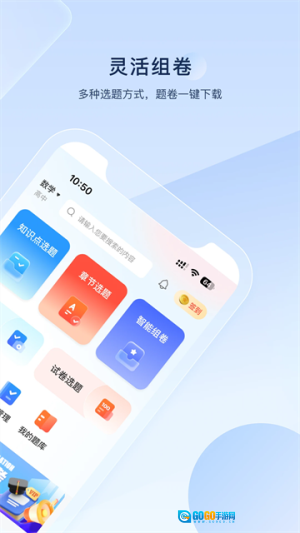 1、首先,并安装组卷App,完成注册后,进入首页浏览各种功能,快速了解使用流程,便于后续操作。