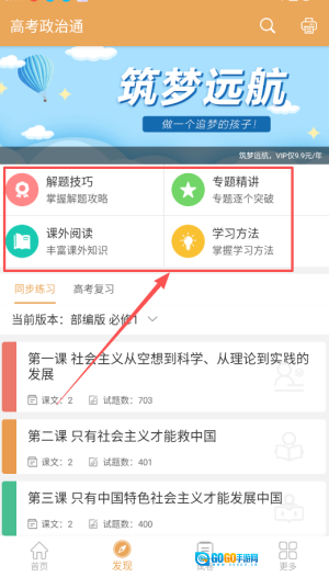 1、首先,在应用商店中搜索并高考政治通App,完成之后注册并登录账号,进入学习界面。