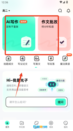 3、使用作文润色功能对已有文稿进行优化,系统会提供句式调整和词汇替换建议。