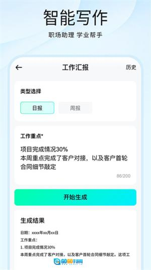 1、智能生成模块支持多种文体一键创作,用户只需输入关键词即可获得完整文章架构。