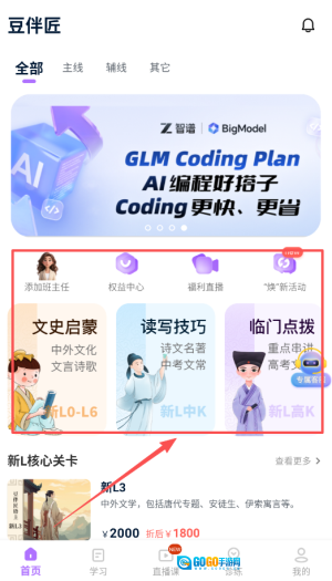 1、首先,并安装豆伴匠App,完成注册后,进入主界面,探索丰富的学习内容与功能,方便后续学习规划。