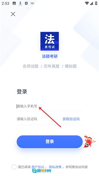 3、进入对应【法硕考研】内容的登录页面,需先在【请输入手机号】输入框中填写个人对应的手机号码。