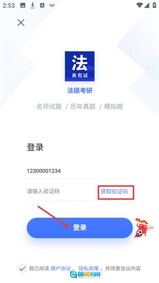 4、在登录页填写好手机号,勾选协议后点击【获取验证码】,后续可操作【登录】按钮完成登录。