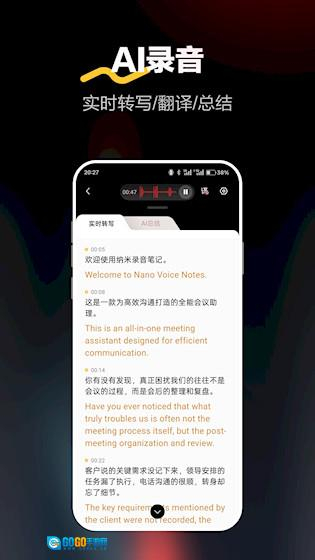 纳米录音笔记是一款集录音与文字记录功能于一体的应用,能够随时捕捉语音信息并将其整理成文字内容。它操作简便,界面简洁清爽,可将语音转化为可编辑的文字,还支持分类管理,适用于会议记录、课堂笔记等多种场景,是一款能有效提升效率的实用工具。