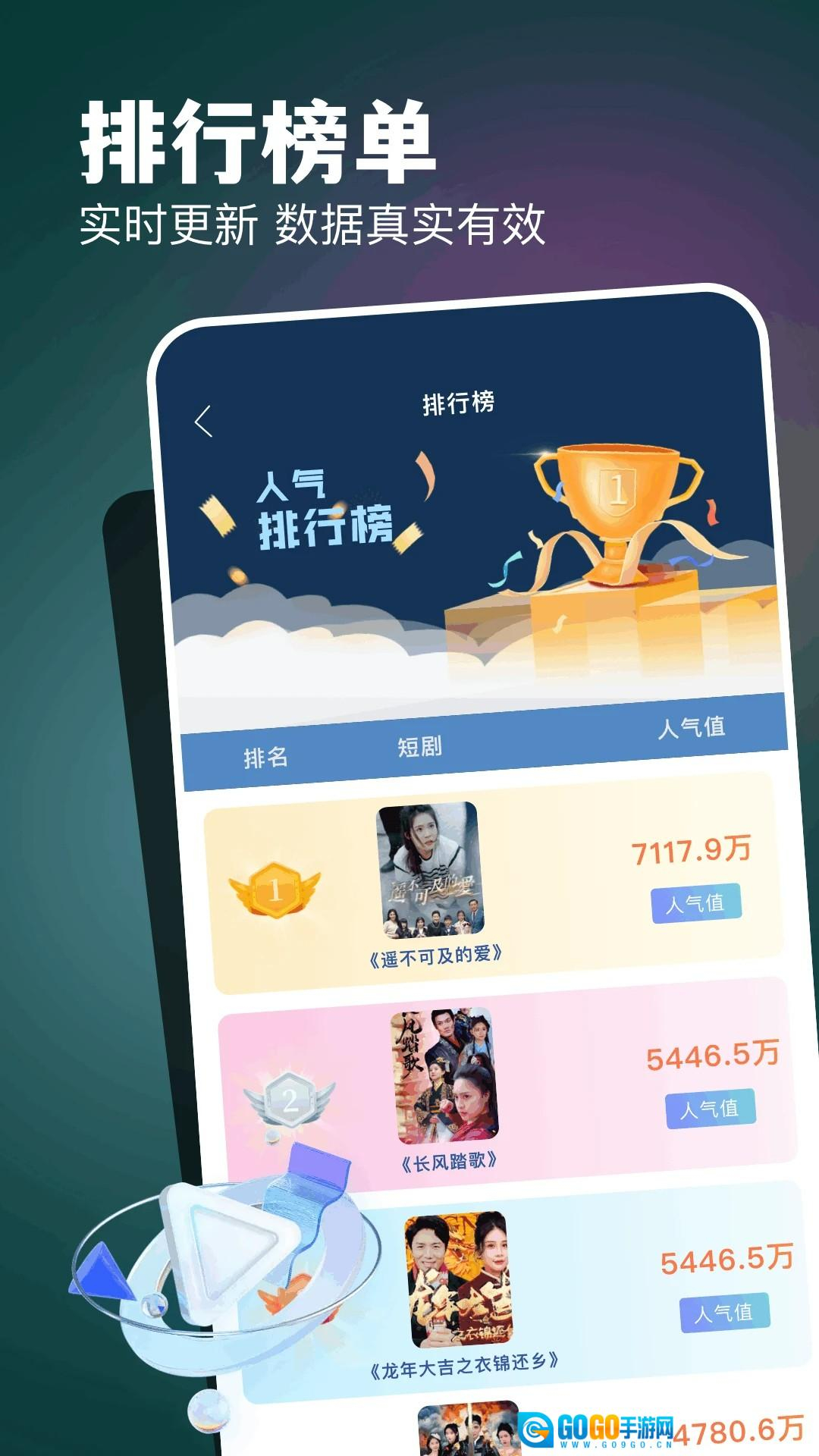 六翼短剧是一款全新的免费短剧播放应用,设有详尽的短剧榜单,支持用户自主关注各类精品短剧内容,便捷在线观看精彩剧集;平台还具备多元的追剧历史记录功能,便于用户快速找到并播放感兴趣的短剧及最新更新内容,畅享优质追剧体验。此外,应用提供全新的播放功能与模式,可根据网络状况灵活调整设置,确保随时随地流畅观看喜爱的短剧,全方位满足用户的追剧需求;同时配备智能搜索工具,助力用户及时查找各类热门好看的短剧视频。
