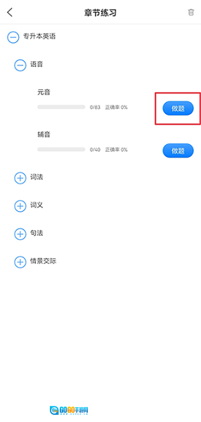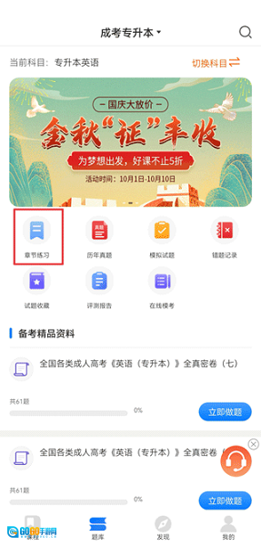1、在题库界面中,点击章节练习。