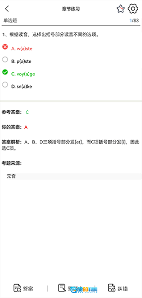 5、最后答题即可出现正确答案与解析。
