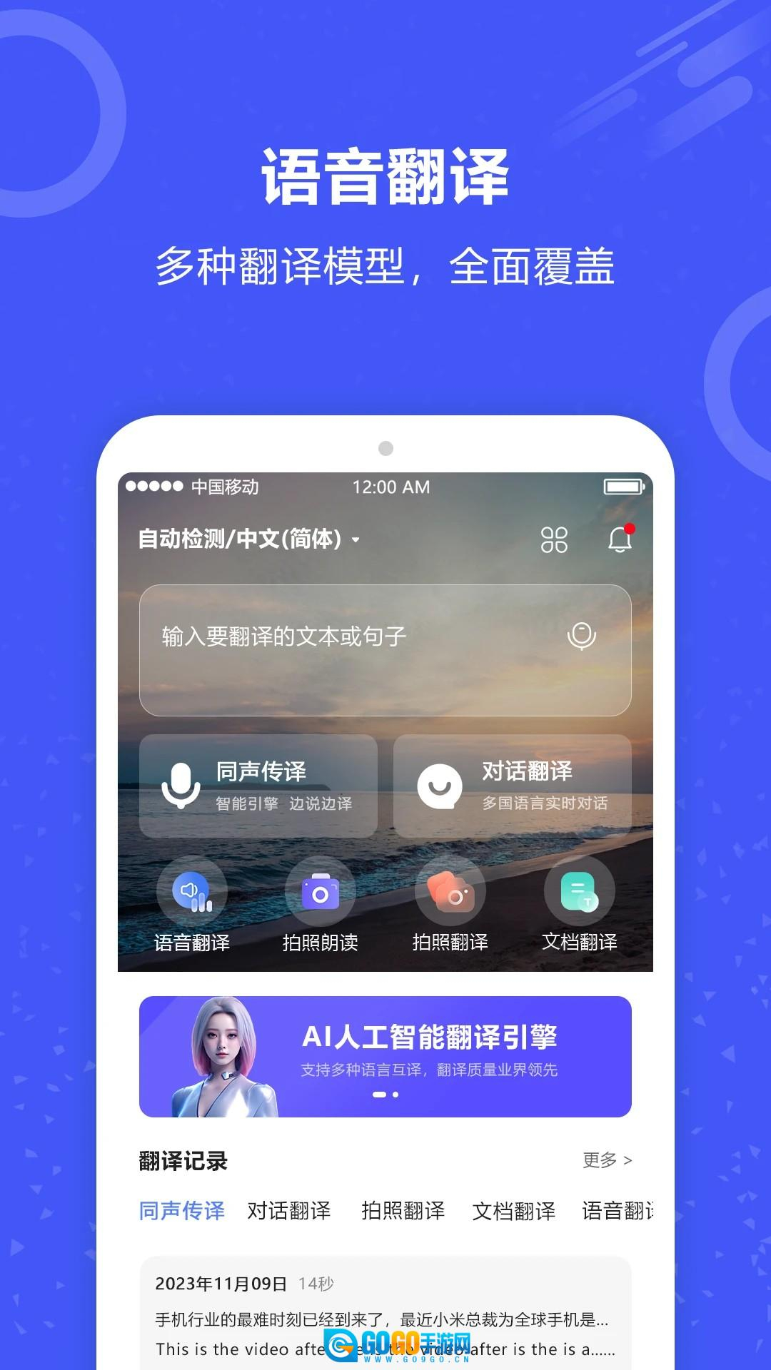 3、语音翻译:支持实时语音输入和自动翻译成目标语言,使跨语言交流更简单,更顺畅。
