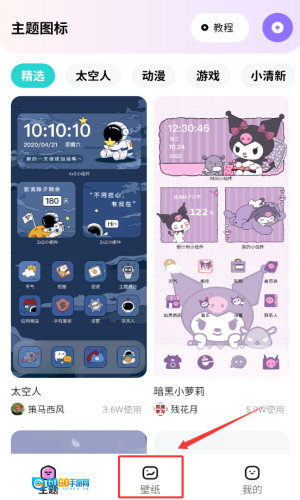 3、在底部导航栏,点击壁纸选项。