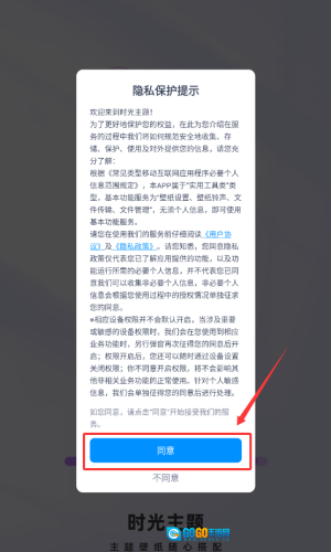 1、在隐私保护提示界面,点击同意按钮。