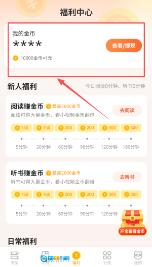 4、最后,在阅读小说的过程中,用户可以获取金币,完成相关任务后即可申请提现,从而体验边读边赚的乐趣。
