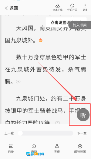 3、阅读时,用户可体验免费听书功能,根据自身节奏聆听内容,让眼睛得以休息,感受全新的阅读乐趣。