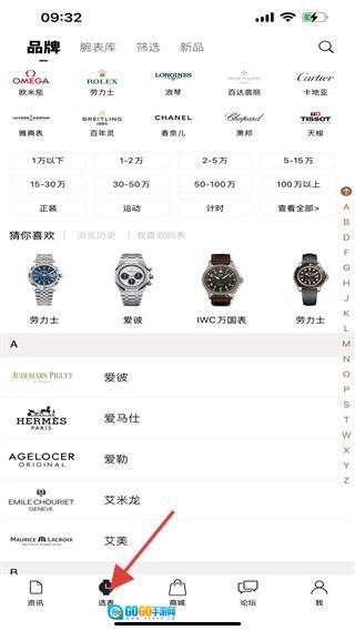 2、选表板块汇聚欧米茄、劳力士等众多品牌,按价格、风格分类,方便用户挑选心仪腕表,满足不同腕表选购需求。