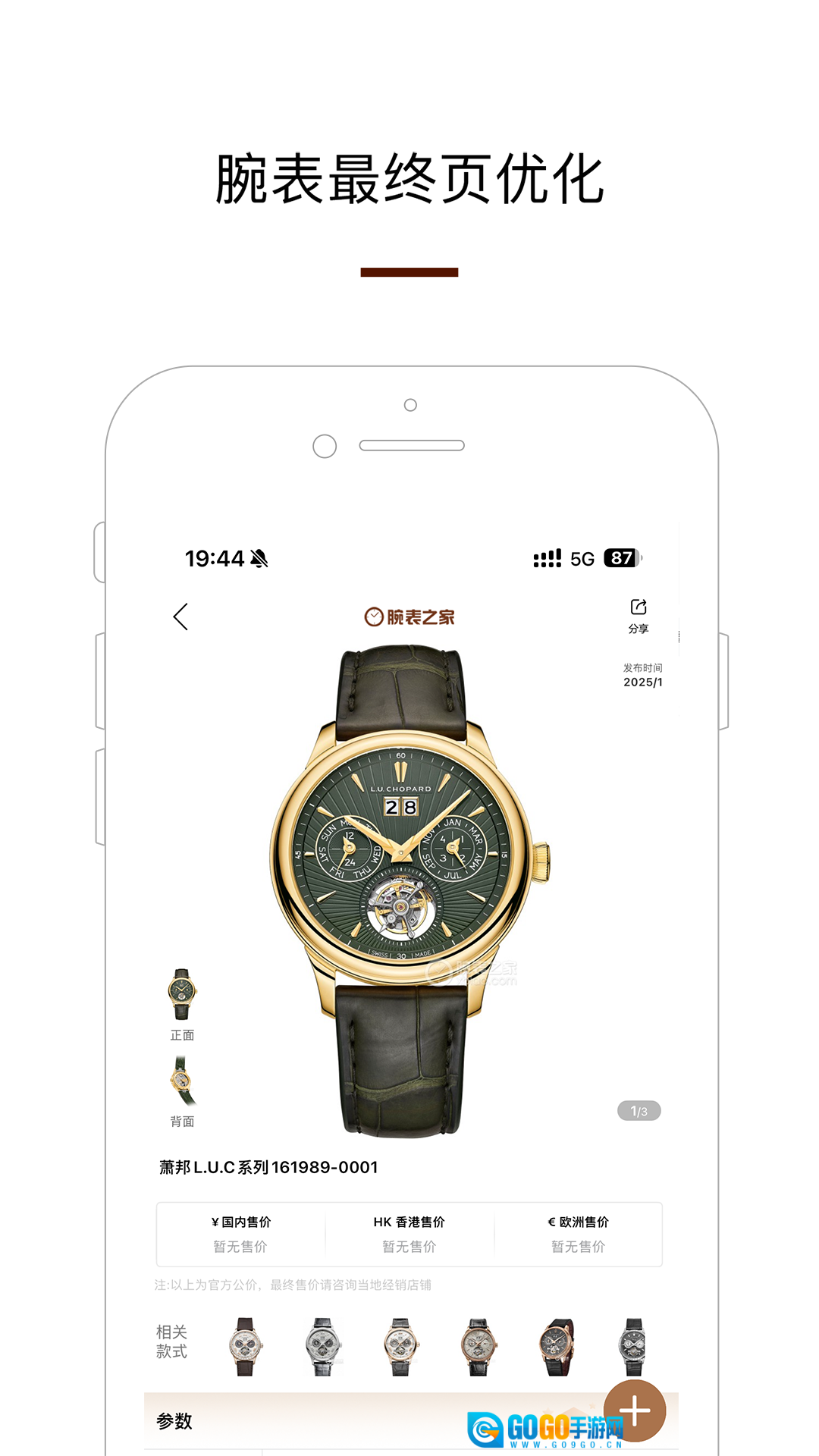 3、腕表选择功能,您可以根据名表的详细信息选择自己喜欢的腕表。