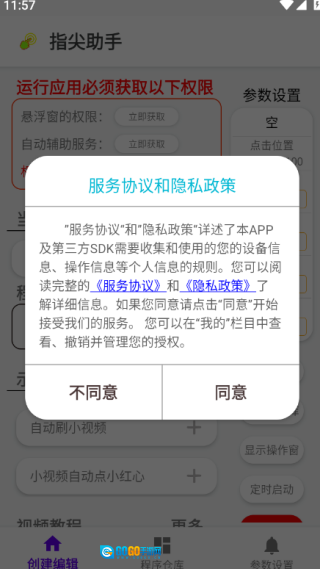 1、阅读服务协议和隐私政策,点击右下角同意。