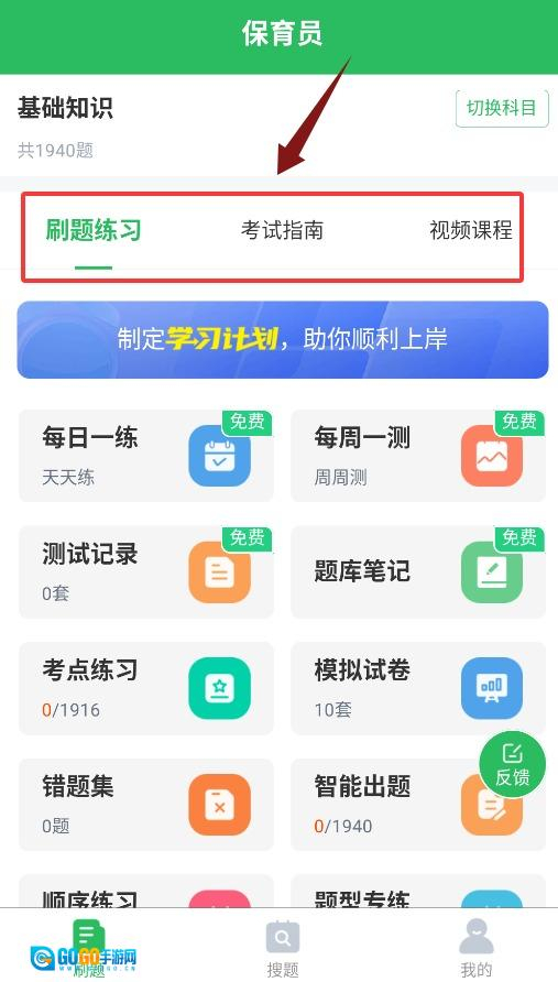 2、刷题界面配备了练习模式、考试指南以及视频课程等各类学习功能。