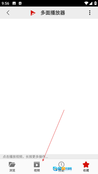 1、在多面播放器页面后,点击底部【视频】选项,查看对应视频内容并进行操作。