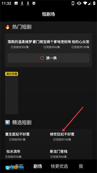2、在【短剧场】页面点击【倾世狂妃不好惹】短剧,可进入该短剧的播放页面。