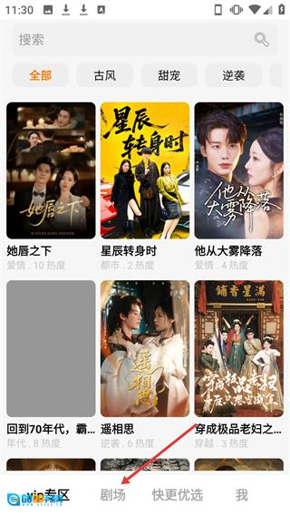 1、在应用首页点击底部的【剧场】选项,可进入短剧场页面。