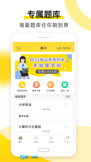 名师在线直播:全国各省专升本名师,在图书馆、自习室、宿舍都为你送上学习盛宴。直播课程可无限回放,学会为止。