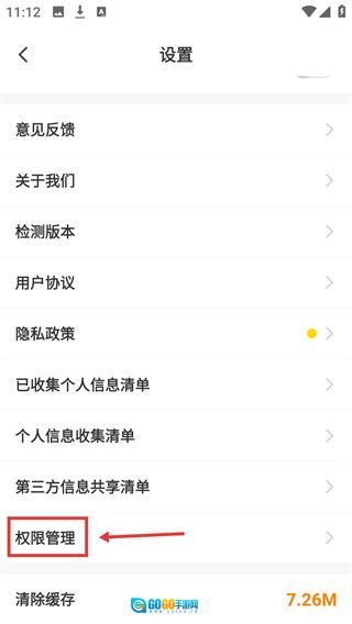 3、在【设置】界面中,找到并点击【权限管理】选项,可进入权限管理页面。