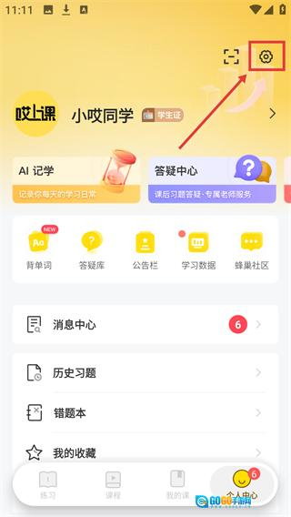 2、进入【个人中心】页面后,点击右上角【设置】图标,即可进入设置界面。
