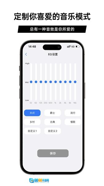 3、涵盖爵士、流行、古典等多种风格的预设EQ音效,同时支持自定义均衡器调节,满足个性化听感需求。