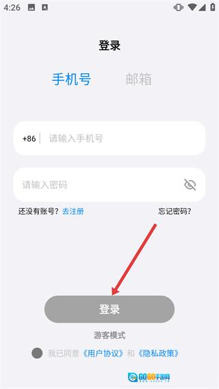 1、在登录页,可选【手机号】输入框填号+【密码】框填密码,勾选【我已同意《用户协议》和《隐私政策》】后点登录。