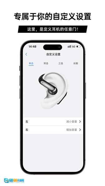1、支持对耳机按键功能进行深度自定义设置,用户可根据个人习惯定义单击、双击及长按所触发的不同操作指令。
