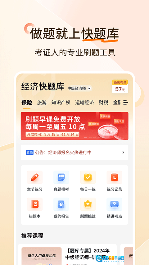 经济师快题库专为备考经济师考试的考生打造,深度融合智能技术与应试需求,提供全周期备考解决方案。题库内容紧跟时代步伐,涵盖了近年来的所有真题,让考生随时随地都能进行模拟练习,提升应试能力。此外,经济师快题库最新版还推出了错题本功能,它详细记录了考生在练习中的所有答题情况,帮助考生清晰了解自己的强弱项,从而进行有针对性的复习。欢迎广大考生体验这款实用的备考工具。