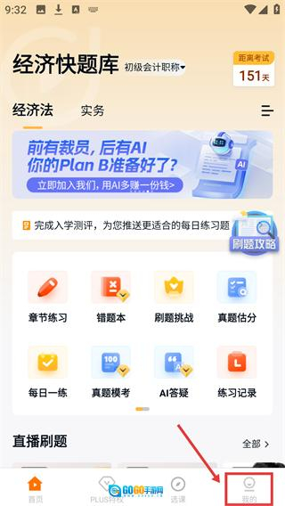 1、在【经济快题库-初级会计职称】界面,点击底部导航栏的【我的】选项,可进入个人中心页面。
