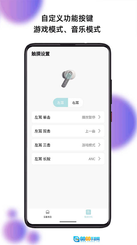 1、支持触控操作自定义,可在软件内自由设置耳机触控区域对应的功能,比如播放控制、音量调节等,贴合个人使用习惯。
