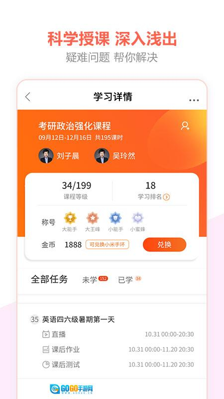 2、课程及时提醒:通过提醒用户完成上课、作业、签到等学习任务,助力提升用户的学习效率。
