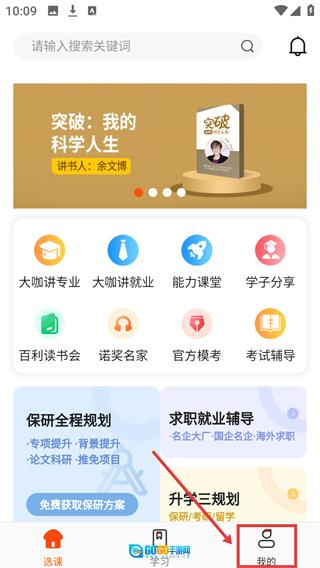 在【选课】界面中,点击底部导航栏里的【我的】选项,就能进入个人中心页面。