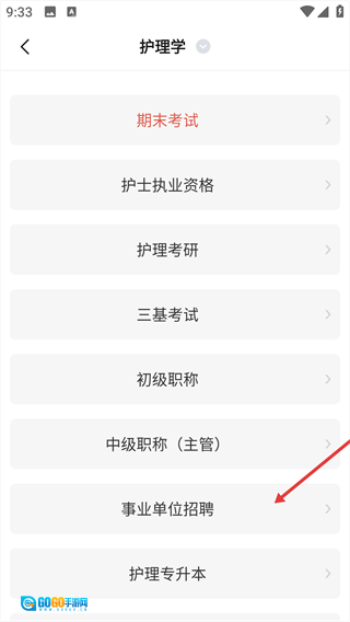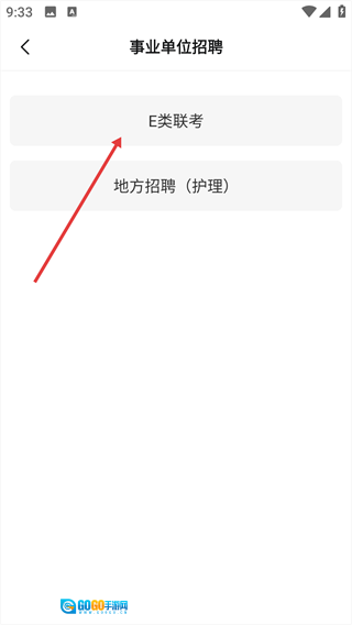 2、点击【事业单位招聘】选项,进入该类别下的细分考试类型页面。