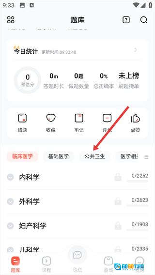 完成类型选择后,回到题库页面并切换至对应分类,就能查看该分类下的科目题库,开展练习。