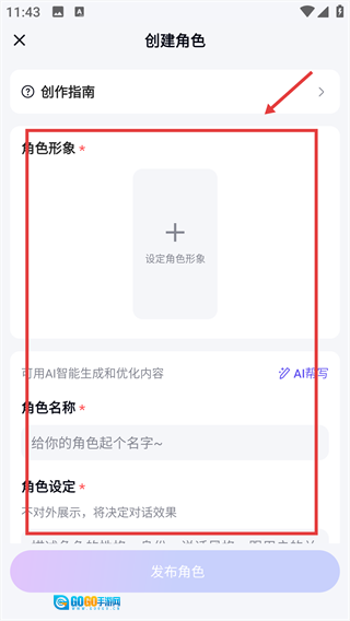 2、需填写【角色形象】【角色名称】【角色设定】等必填信息,以完成基础配置。