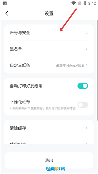 3、在【设置】页面,选择【账号与安全】选项。