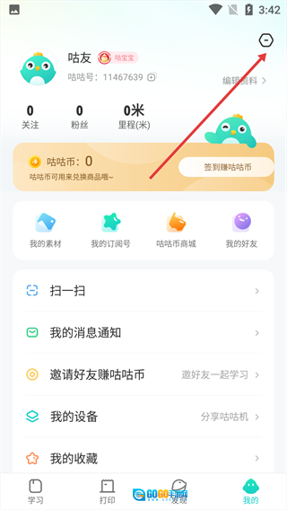 2、进入个人中心页面后,点击右上角的设置按钮,即可进入【设置】界面。
