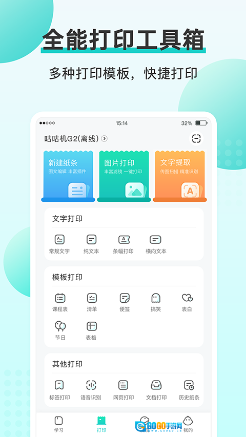 咕咕机软件有着强大且丰富的功能,它既能作为拍照搜题工具——遇到不会的题目时,直接拍照上传就能立刻获取详细的答案解析;同时也是一款实用的打印软件,提供多种可使用的模板,无论是学习还是办公场景都能派上用场。用咕咕机对准作业轻轻一拍,就能得到所需的答案与详细解析,更有2.9亿真题助力成绩快速提升,此外还有丰富的打印模板和素材模板,帮助你轻松生活、高效办公。