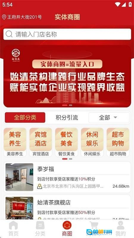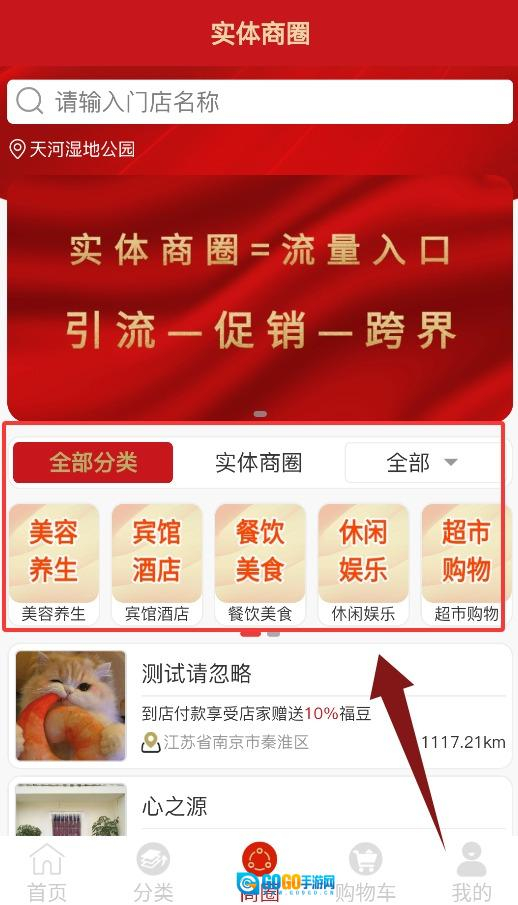 4、商圈界面涵盖美容养生、餐饮美食、休闲娱乐等全部分类。