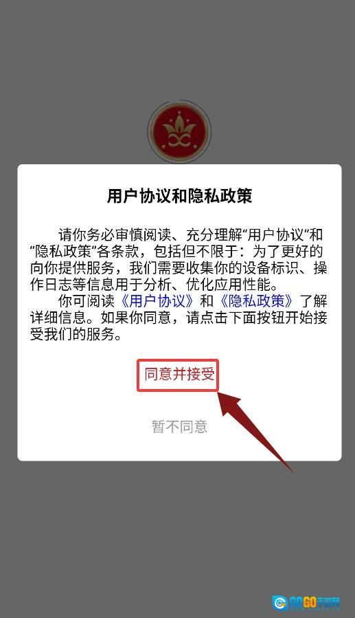 1、首次启动应用需点击同意并接受,确认后方可进入主界面。