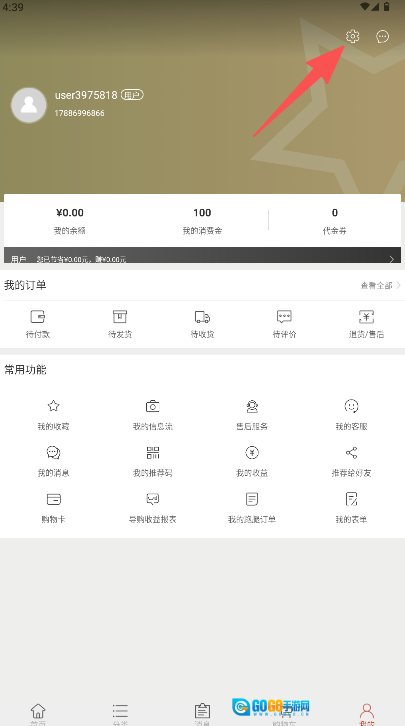 1、进入“我的”页面后,点击右上角的“设置”图标,即可进入设置页面。