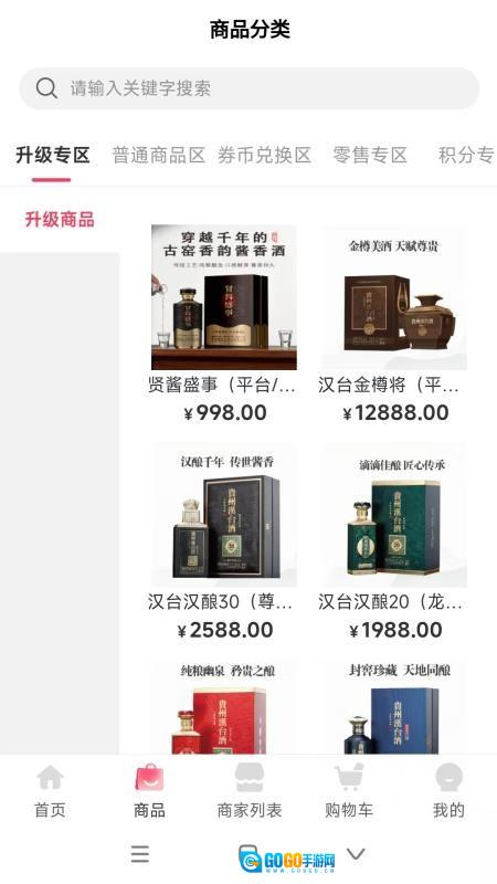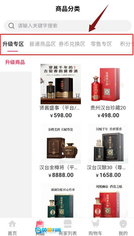 3、商品界面包含升级专区、平台商品区与卷币兑换区等板块。
