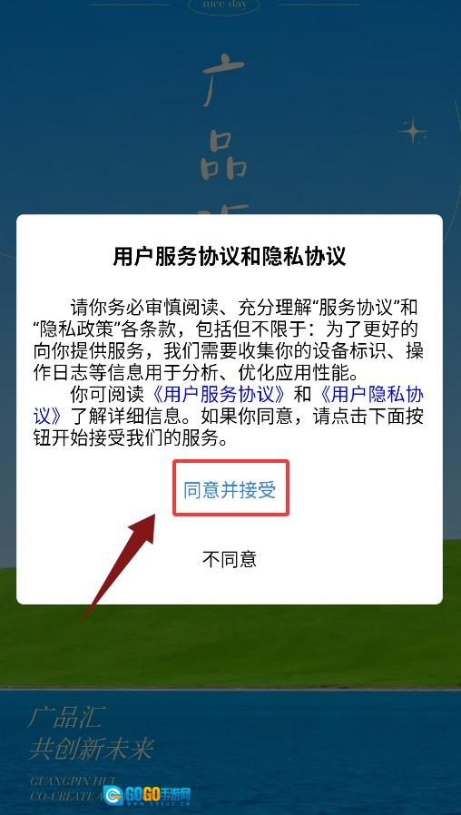 1、首次启动应用需点击同意并接受,确认后方可进入主界面。