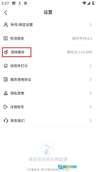 3、进入【设置】页面后,找到【清除缓存】选项,点击该选项可触发缓存清理的确认流程。