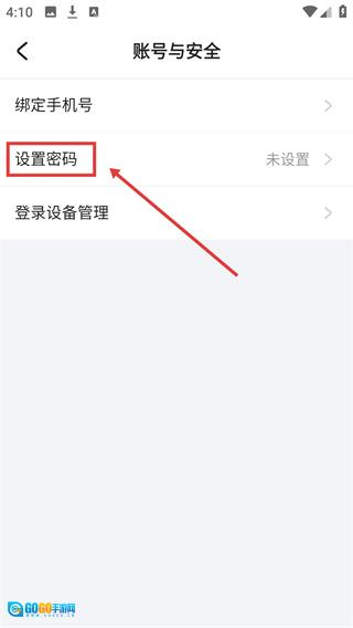 4、进入【账号与安全】页面后,找到【设置密码】选项并点击,可进行该账号密码的设置相关操作。
